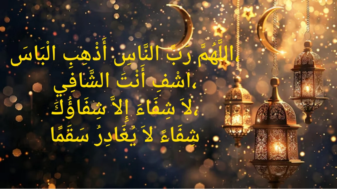 “Allahumma Rabban-naas, adhhibil-ba’s, ishfi antash-Shafi, la shifa’a illa shifa’uka, shifa’an la yughadiru saqama”.